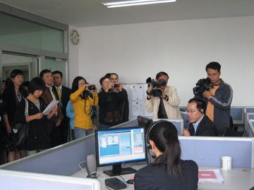 (新系統(tǒng)開通,由劉多祥總經(jīng)理接聽了第一個客服電話,并接受了多家媒體的采訪)